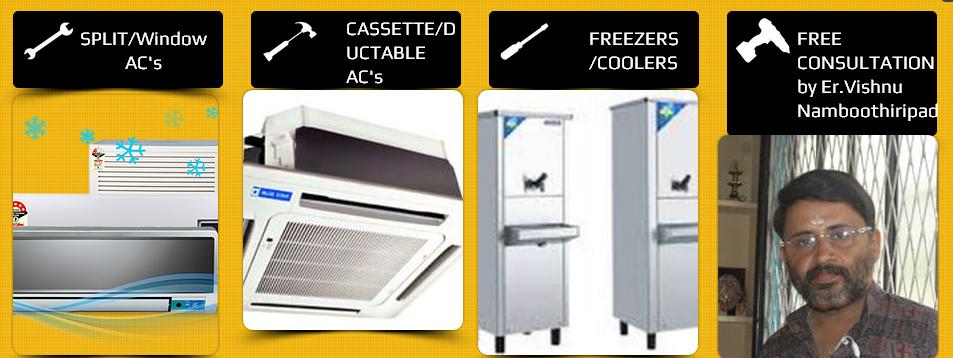 We  undertake all brands instillation ,warranty ,or un warranty services,  repairs, patch works,  painting, Rental and annual maintenance contract(A.M.C) of Split/Window/Package/Central Plant Air conditioner/Refrigerators Washing Machines/ Water coolers /Water Purifier/ Deep Freezer/Chillers/Cold Rooms/Stabilizers/Inverters/UPS/ Electrical and Electronic equipment. We also provide Manpower including Electrician, Plumber, and Manson etc.